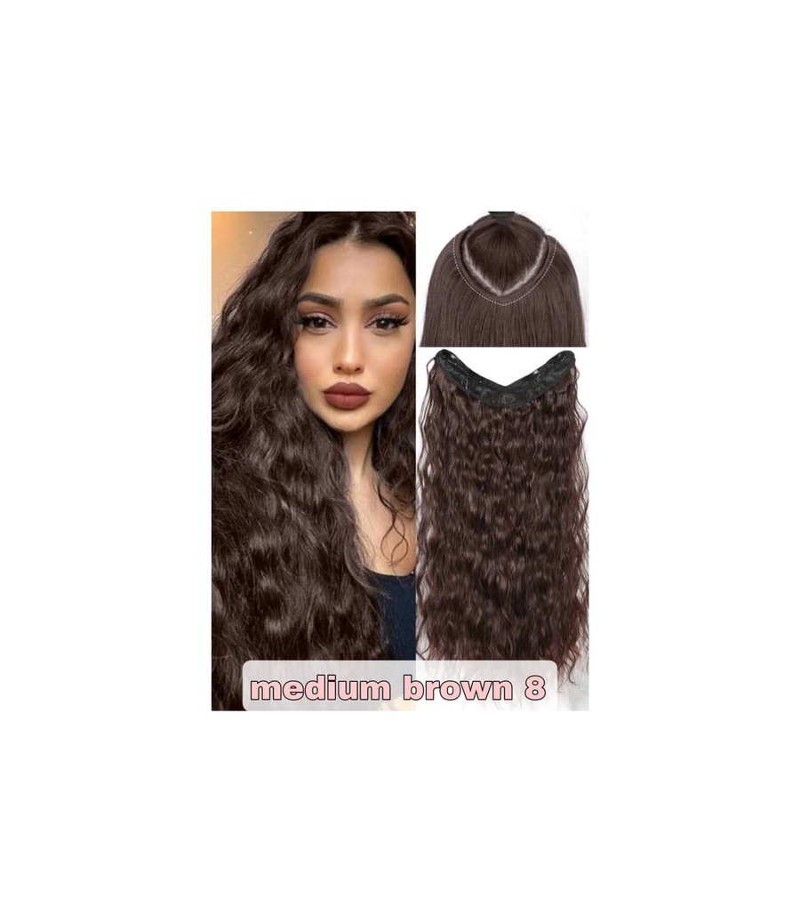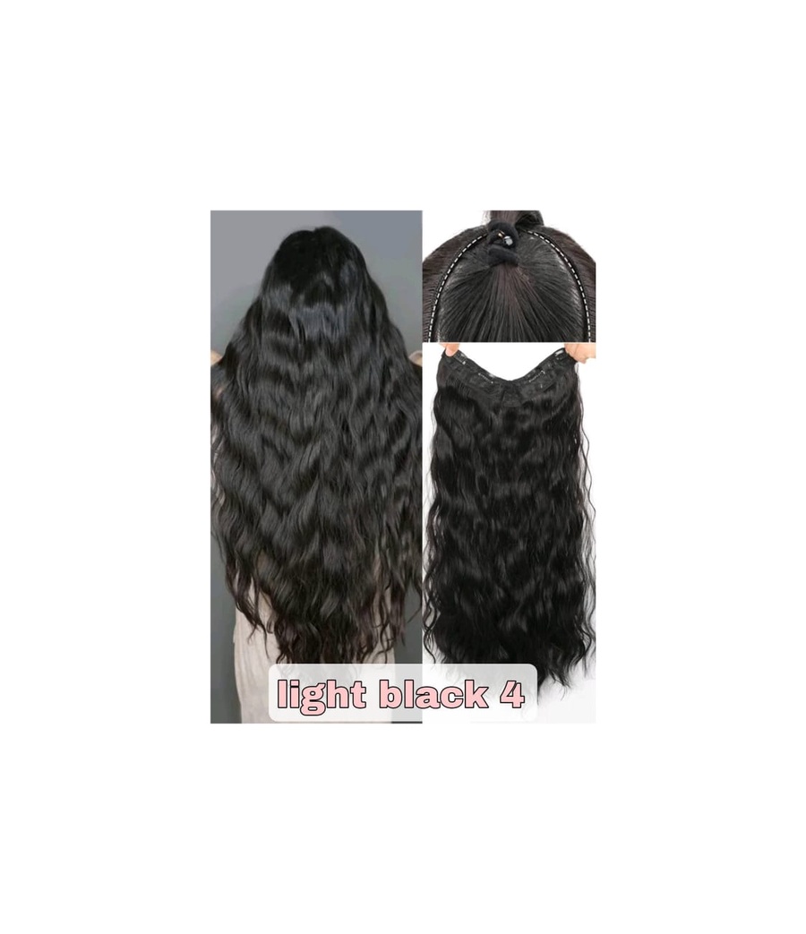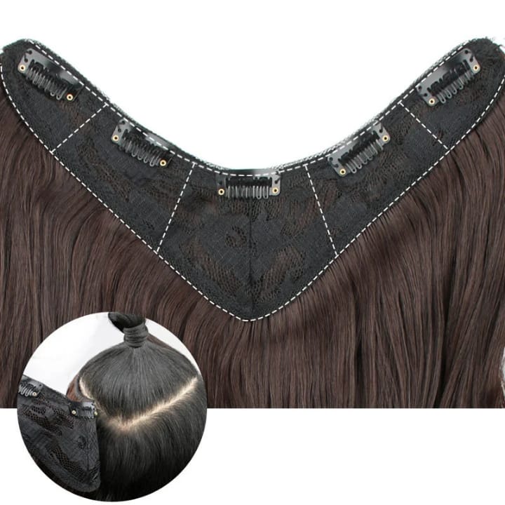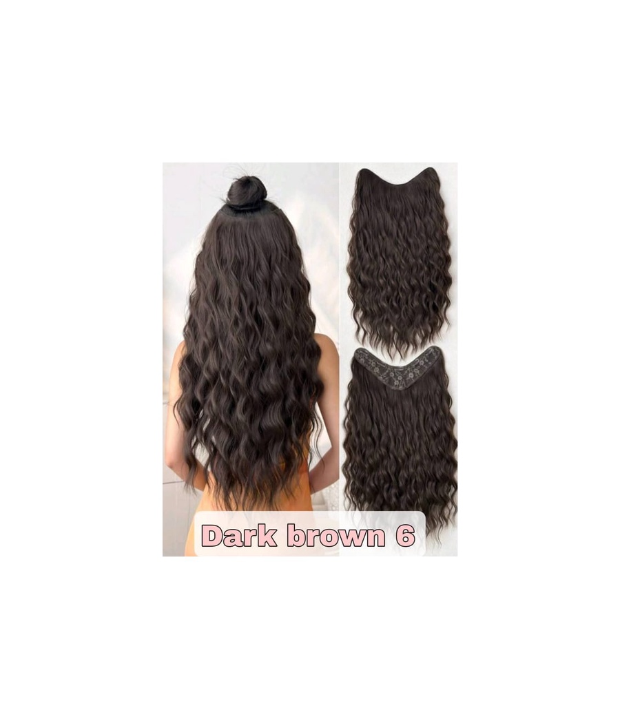 اكسيتنشن حرف V بـ6 كلبسات، متوفر بجميع الألوان: أسود رقم 1، بني 4 و6، بني عسلي 8 و10. شعر فايربكس حراري معادل الطبيعي بملمس ومظهر طبيعي 100%،